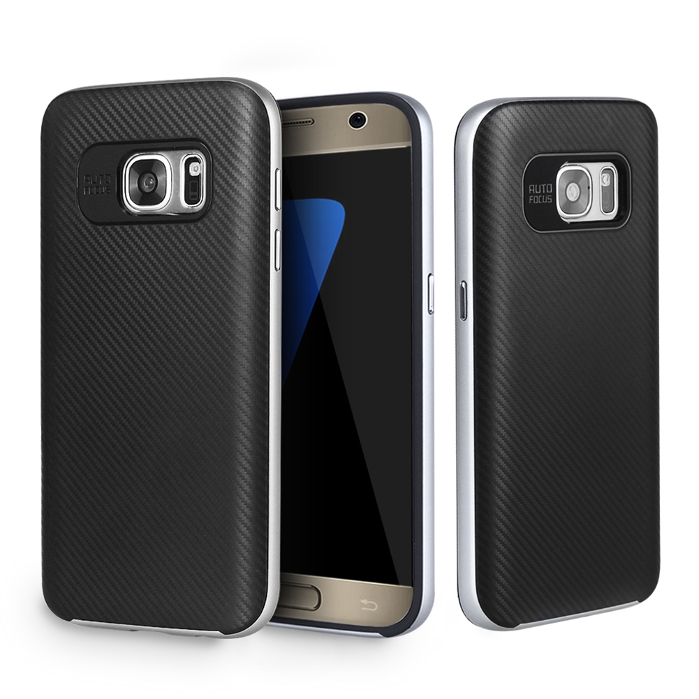 Galaxy S7 Case, AmberCase Dual Layer Bumper Extreme Protection Case - Black + Silver
