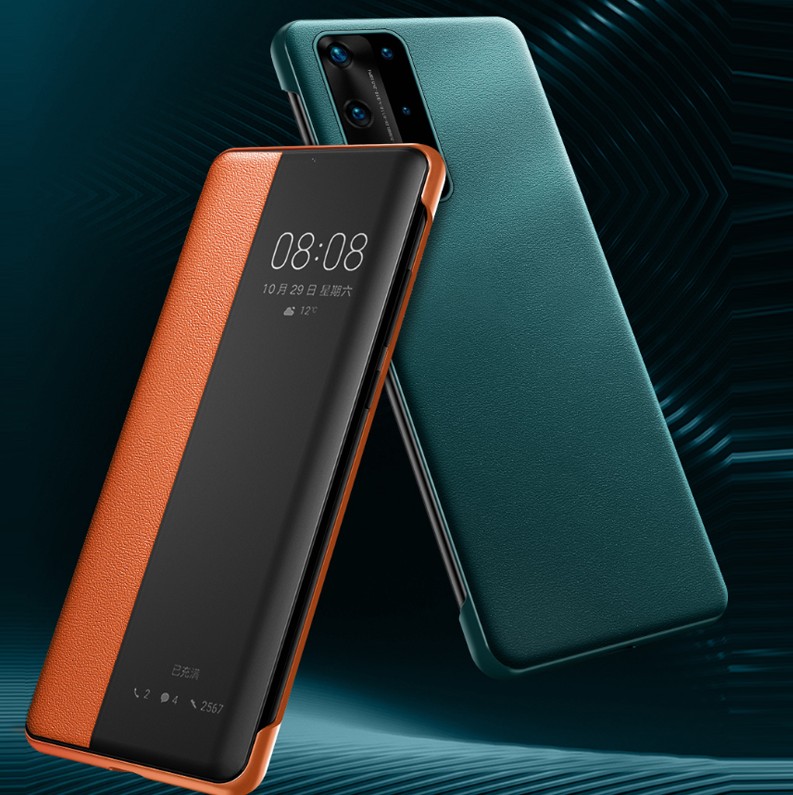 适用于华为p40pro手机壳p40透明智能视窗素皮真皮无边框翻盖保护套5g版全包防摔pro超薄高档男商务